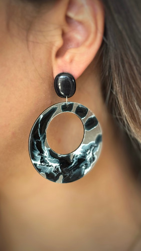 گوشواره حلقه گرد نقره ای مشکی رگه دار